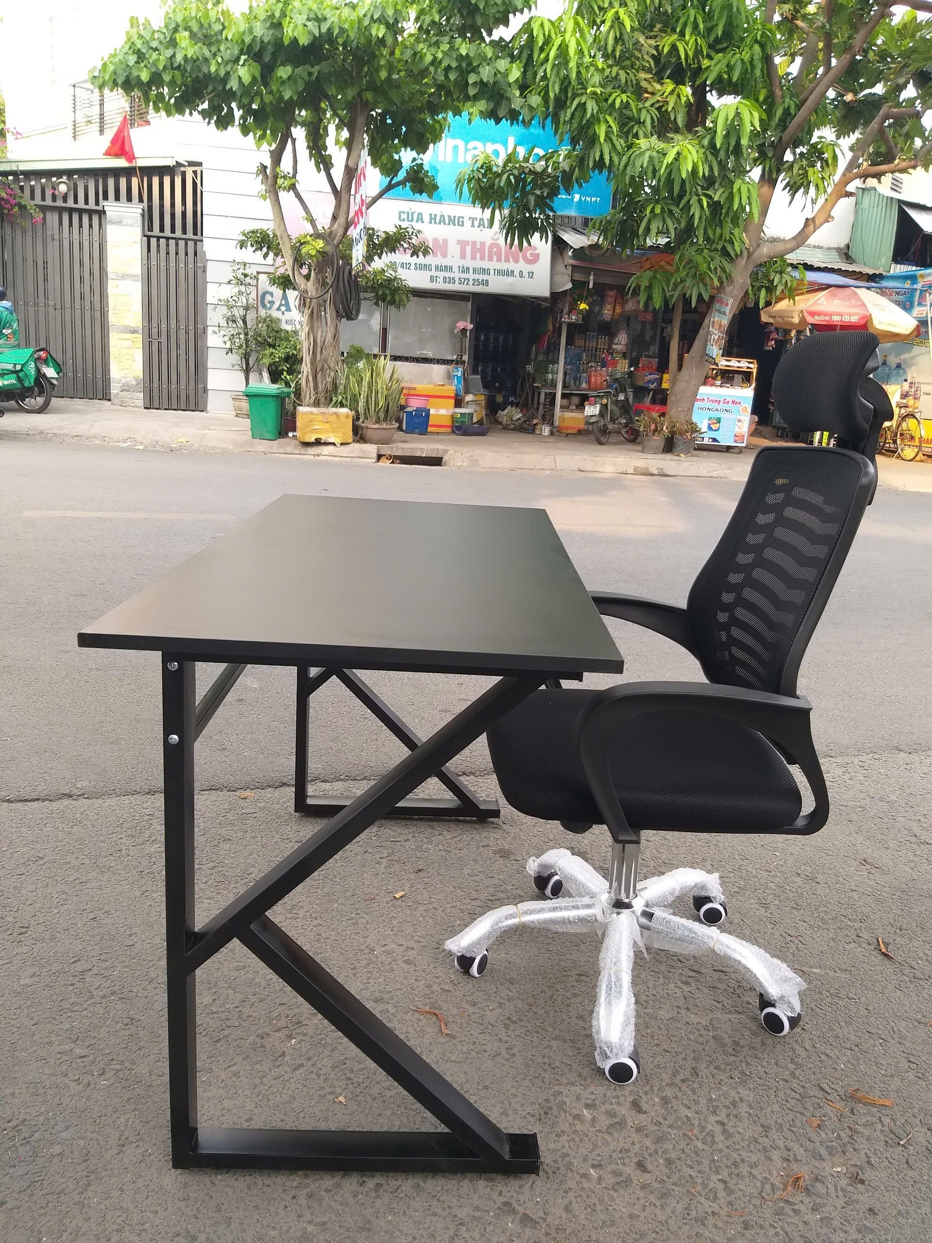 BÀN : Dài 1200 x Rộng 600 x Cao 750 (mm)GHẾ : Cao chỗ ngồi : 42cm – 52cm Cao tổng thể: 104cm – 114cm Rộng chỗ ngồi : 50cm Rộng phủ bì: 58cm Sâu : 53cm